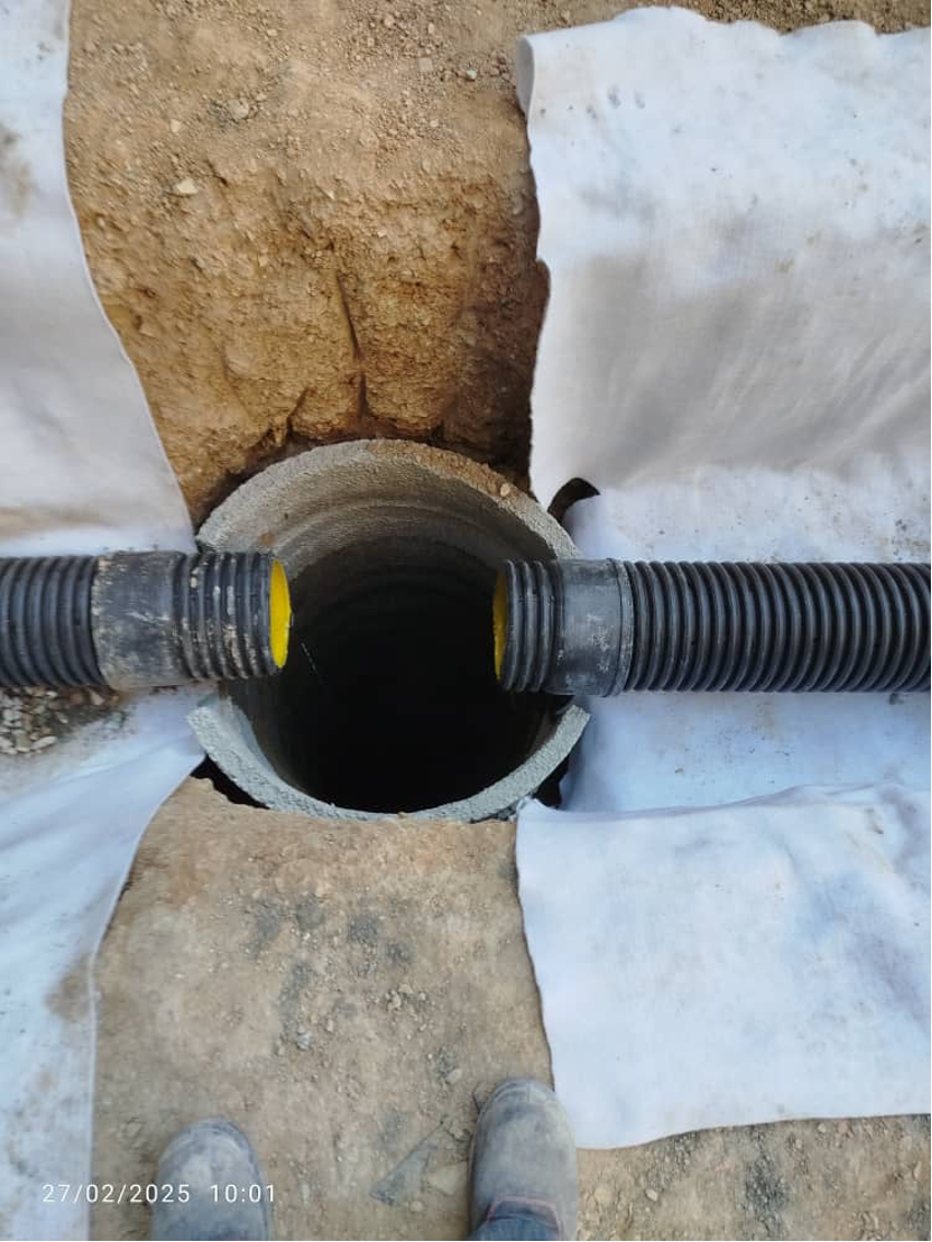 5- اجرای ژئوتکستایل و لولهگذاری لولههای زهکش
