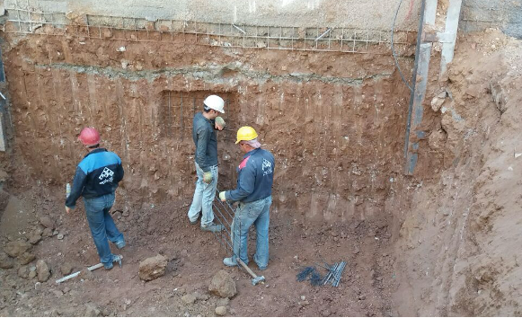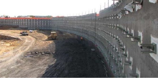 با توجه به عمق قرارگیری ردیف مهارها، خاکبرداری به صورت مرحلهای به عمق 1.5 تا 3 متر و به صورت پانلهای 6 تا 9 متری انجام شده و رگلاژ دیوارهها به صورت دستی انجام میشود. در صورت انکر بودن المانها، در صورت نیاز حفاری بلوکهای بتنی نیز در این مرحله انجام میگیرد. در شکل عملیات اجرایی این مرحله نشان داده شدهاست.
