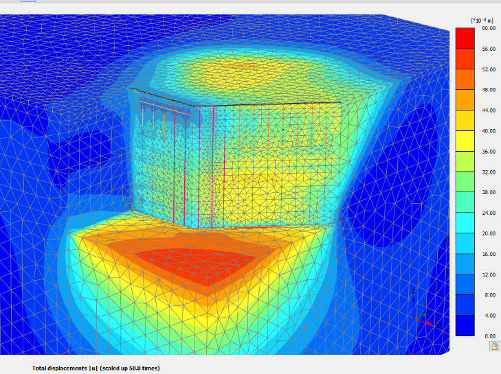 شکل 9- مدلسازی سه بعدی با نرم افزار Plaxis3D دیواره گود به روش انکراژ-پروژه گودبرداری ساختمان بنیاد تعاون ودجا واقع در نوبنیاد