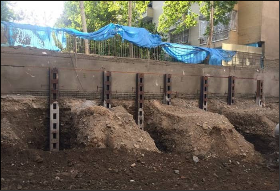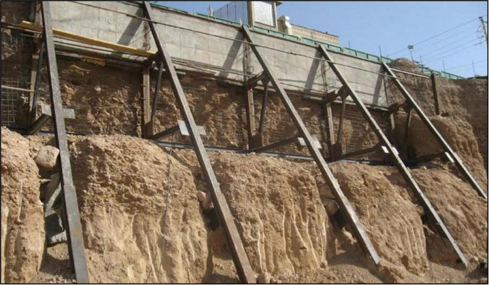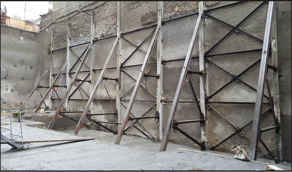 برای خاکهای ضعیف حتما می بایست از این دو روش استفاده نمود: ۱- بتنپاشی یا تختهگذاری در فضای بین دو سازه نگهبان و ۲- اتصال عرضی خرپاها جهت افزایش ضریب ایمنی و جلوگیری از کمانش جانبی آنها
