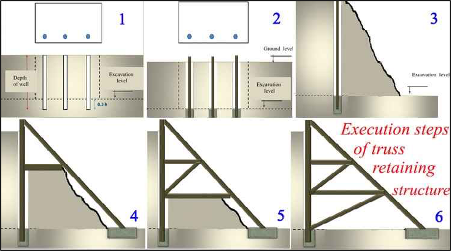 مراحل اجرایی سازه نگهبان خرپایی عبارتند از: