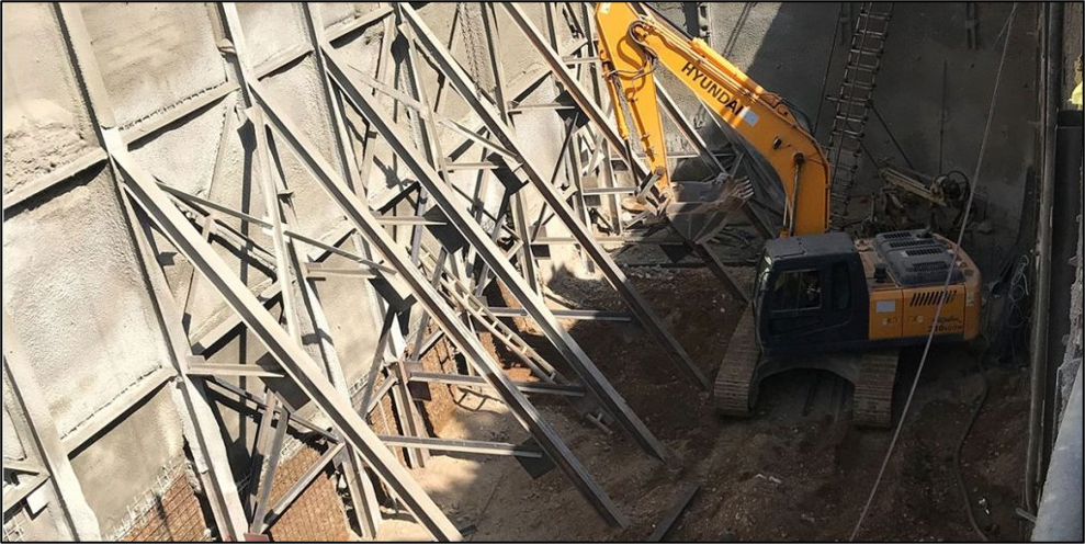 برای جلوگیری از برخورد ماشینآلات، مانند بیل مکانیکی و لودر به اعضای مایل در زمان گودبرداری، حتما زمان گودبرداری چند نفر در محل حضور داشته باشند تا خاک نقاط نزدیک به محل اعضای مایل را به صورت دستی جابهجا کنند. در غیر این صورت، برخورد ماشینآلات با خرپاها ممکن است منجر به آسیب شدید آنها شود.